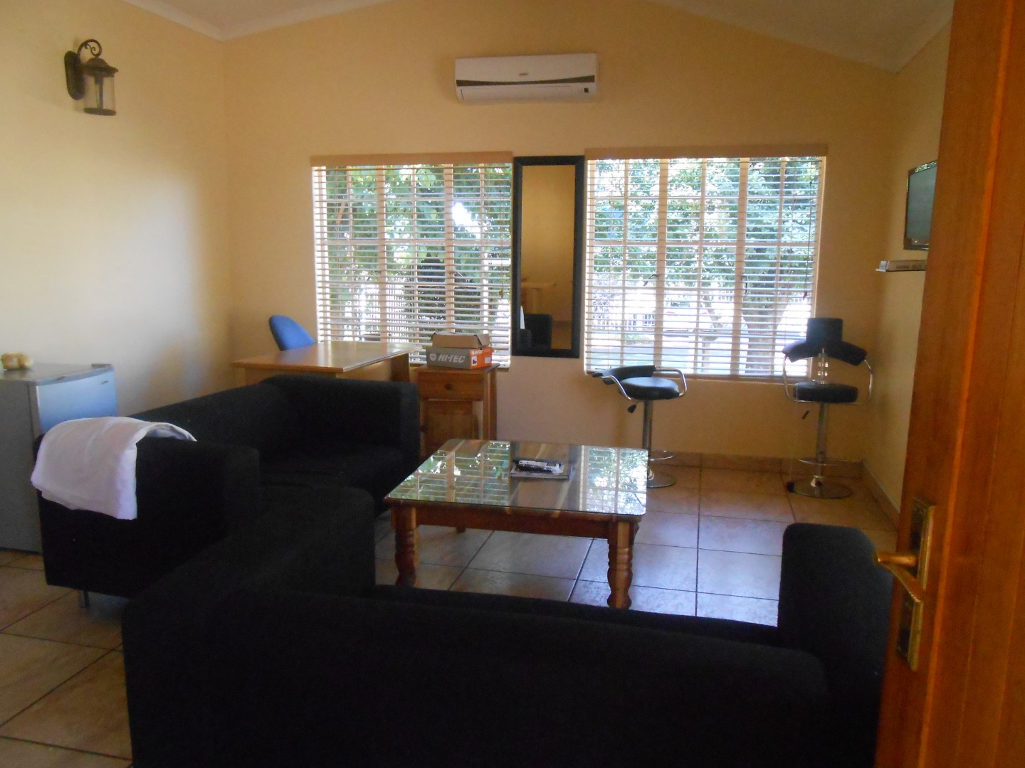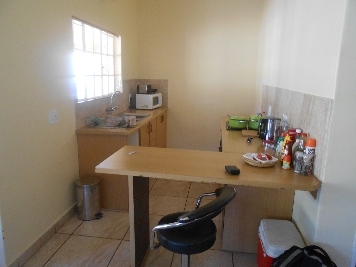 Fully Furnished 2 bedroom flat to rent in a quiet neighborhood close to the Mokala Mall. You have parking space for 1 vehicle, an open plan Kitchen with Living room, 2 bedrooms, and 1 bathroom.