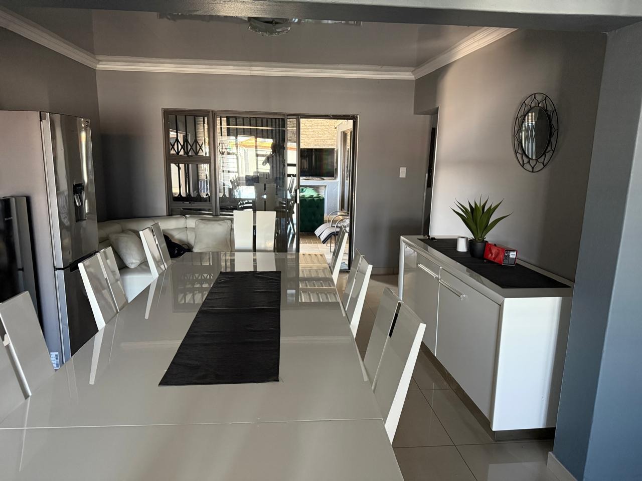 Hey there! Check out this super stylish and secure 3-bedroom, 2-bathroom rental home in Mothibistad, Kuruman. It's got a really modern vibe with a sleek grey exterior and a paved driveway, making it look great and easy to maintain.