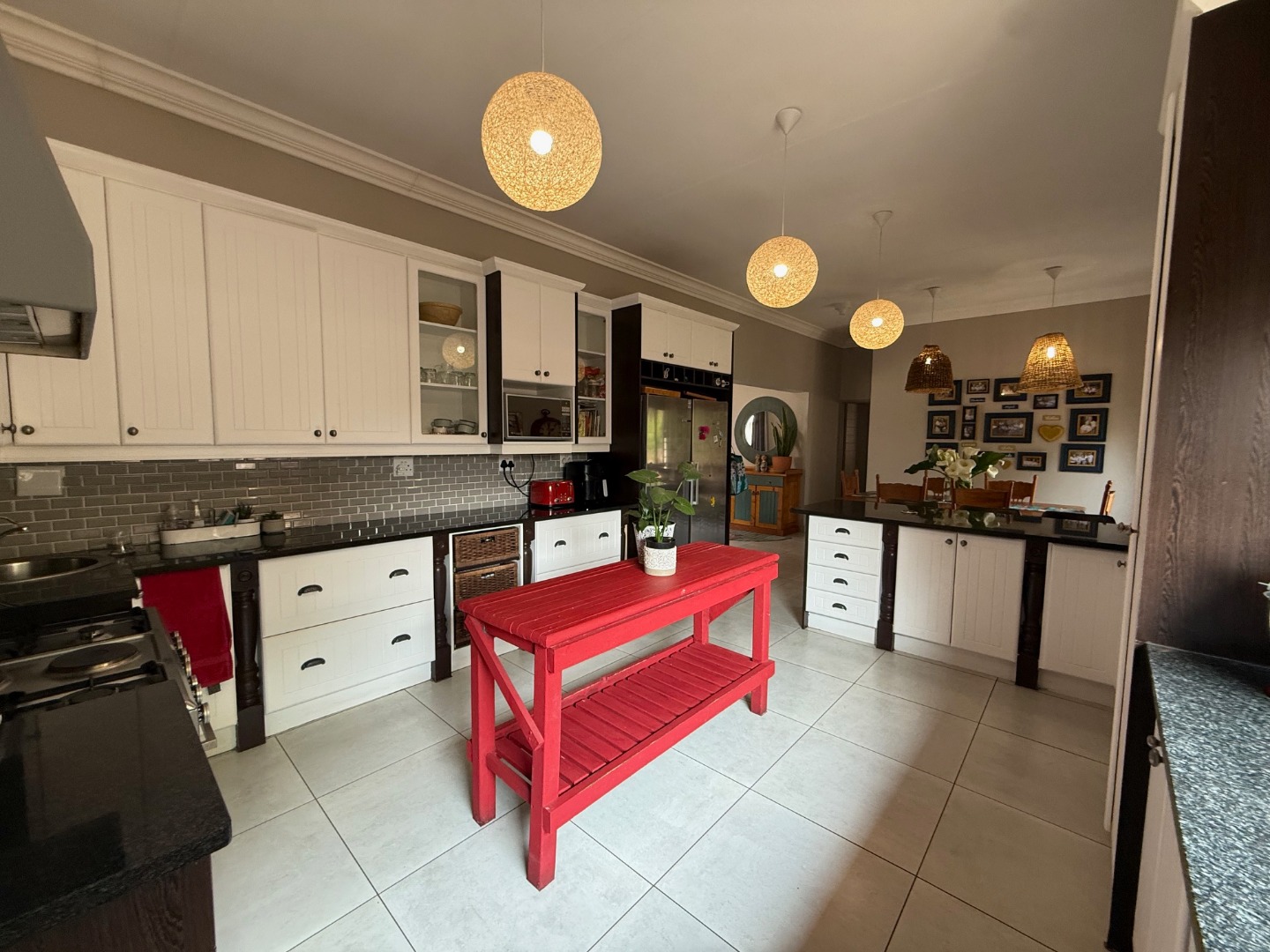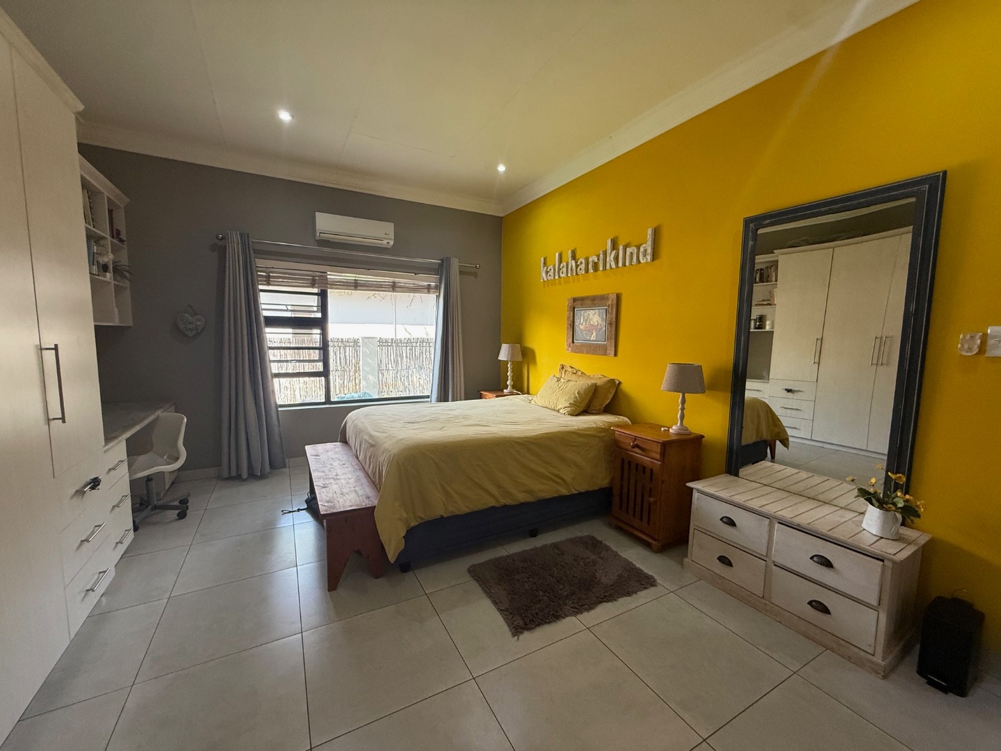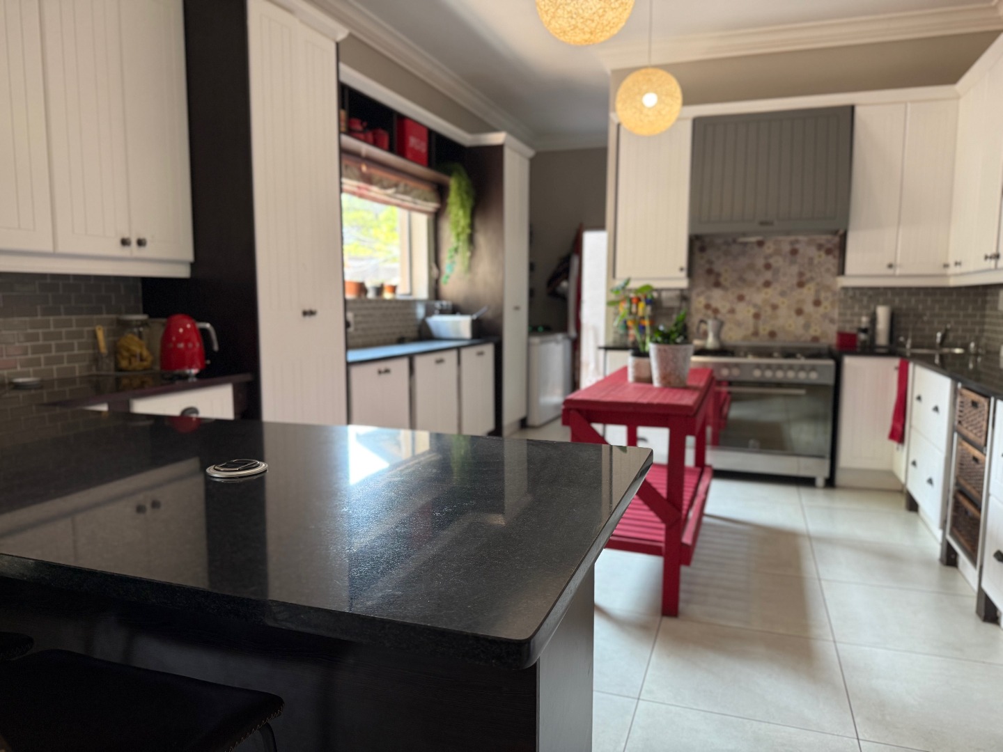 The kitchen has ample cupboard space, with granite tops and separate scullery for convenience.