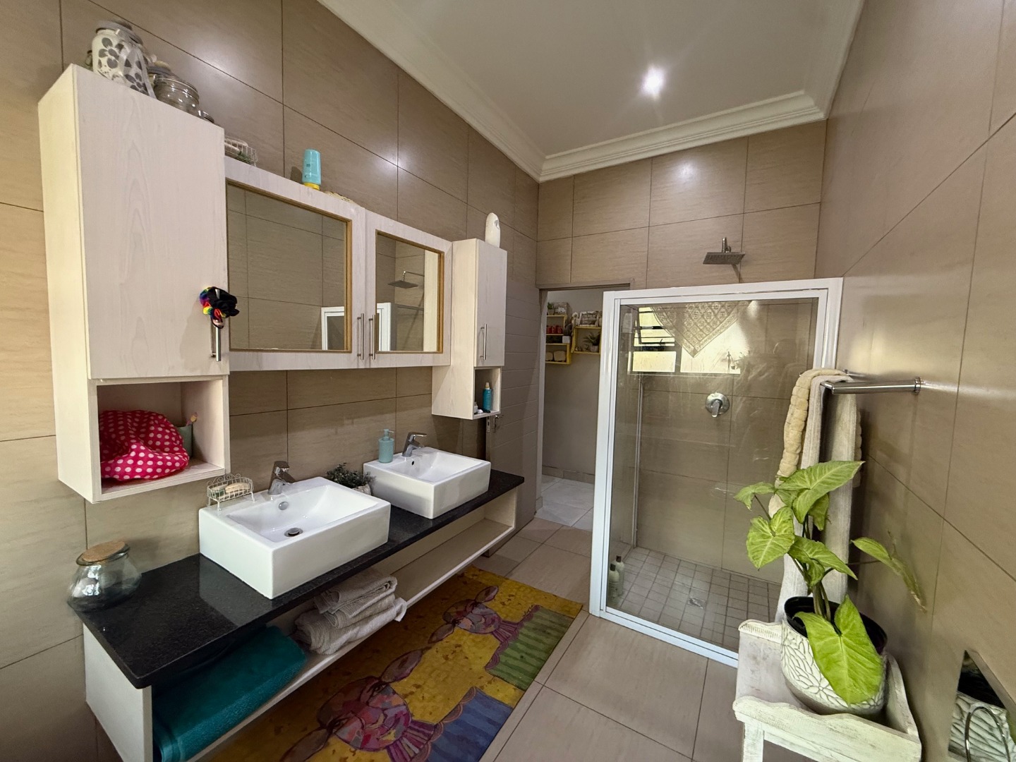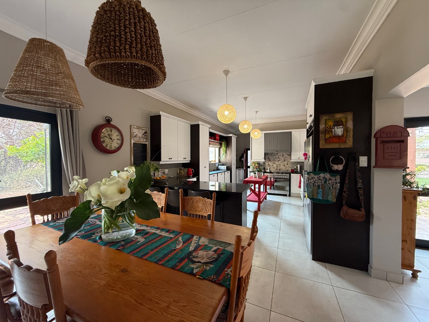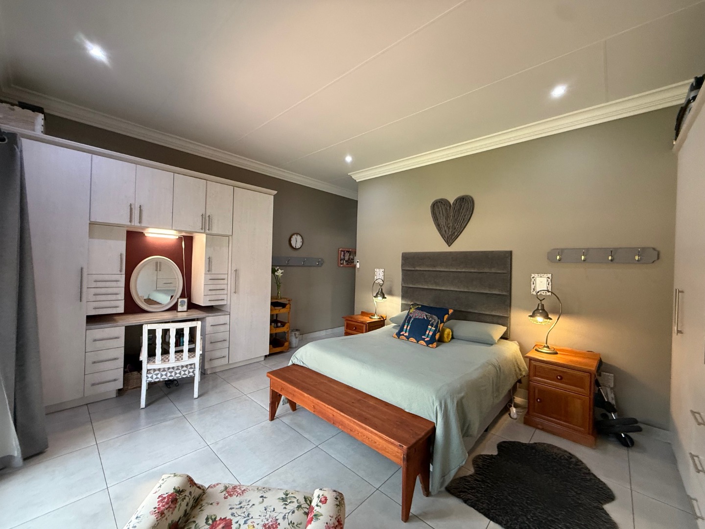 The kitchen has ample cupboard space, with granite tops and separate scullery for convenience.
